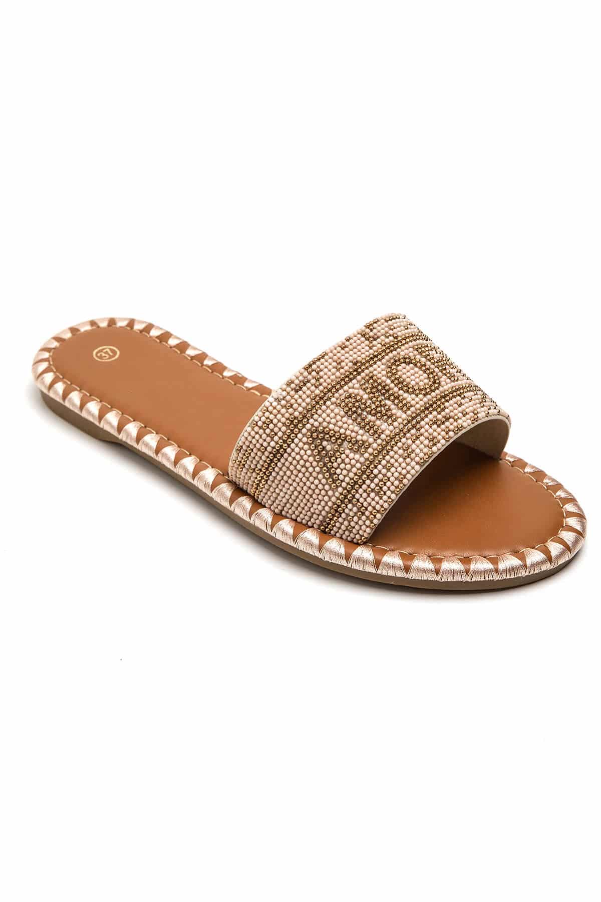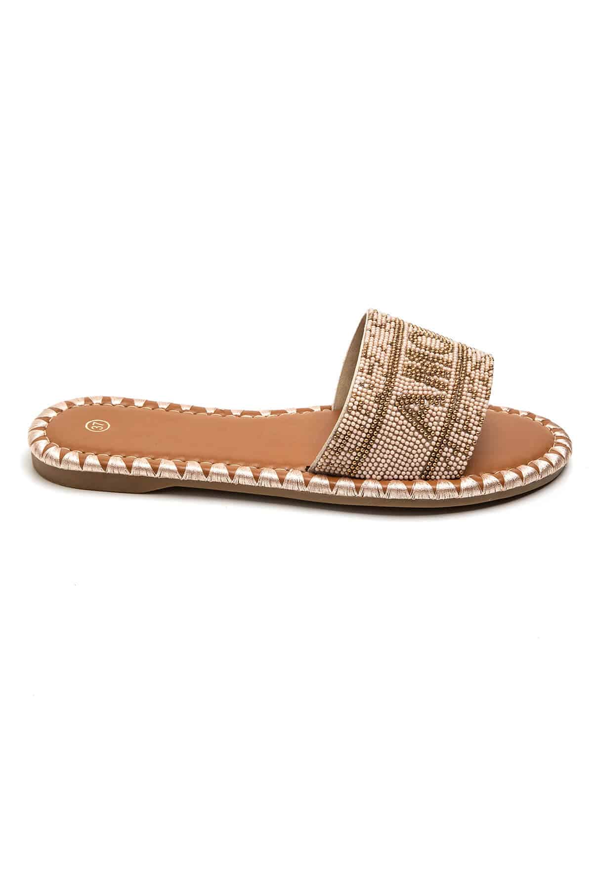 Petite sandale simili de très belle qualité perles semelle élastomère