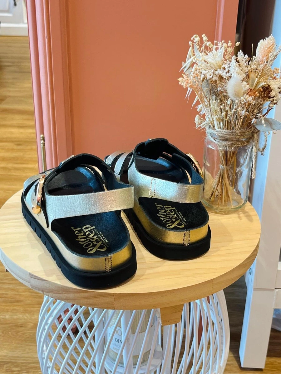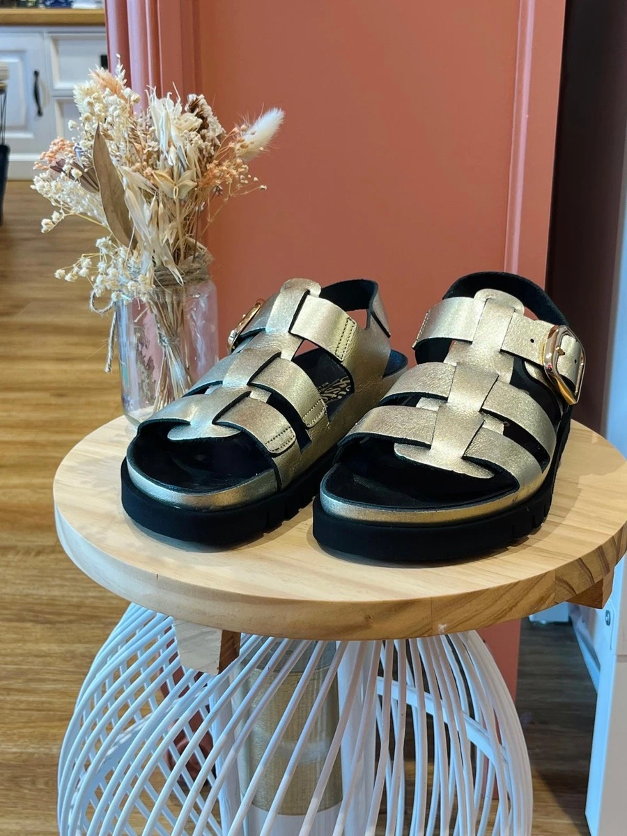 LINA, nos sandales dorées à la forme spartiates. Laissez-vous séduire par ces sandales dorées au style affirmé et moderne. Avec leurs brides style méduse et leur finition métallisée subtilement brillante, elles apportent une touche chic et audacieuse à toutes vos tenues estivales.