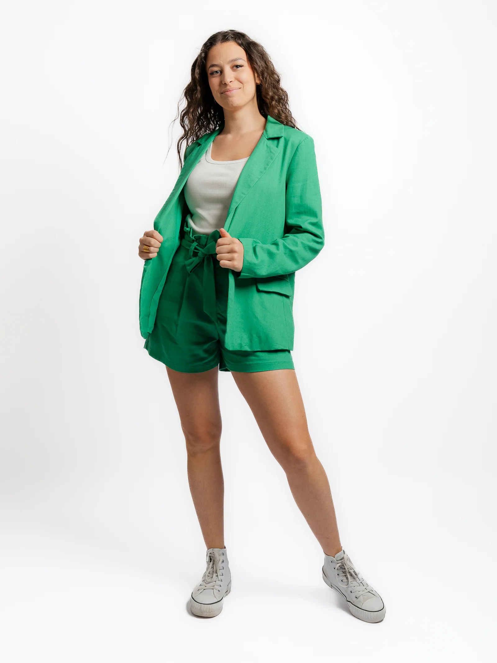 Découvrez notre short vert Charlotte ! Confectionné dans une matière agréable et doté d’une belle couleur, ce court vous offre un confort ultime. Portez-le avec sa veste de blazer assortie pour un look chic et tendance. Soyez prêt à faire tourner les têtes avec ce short stylé et confortable !