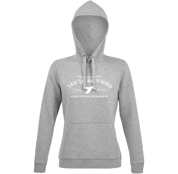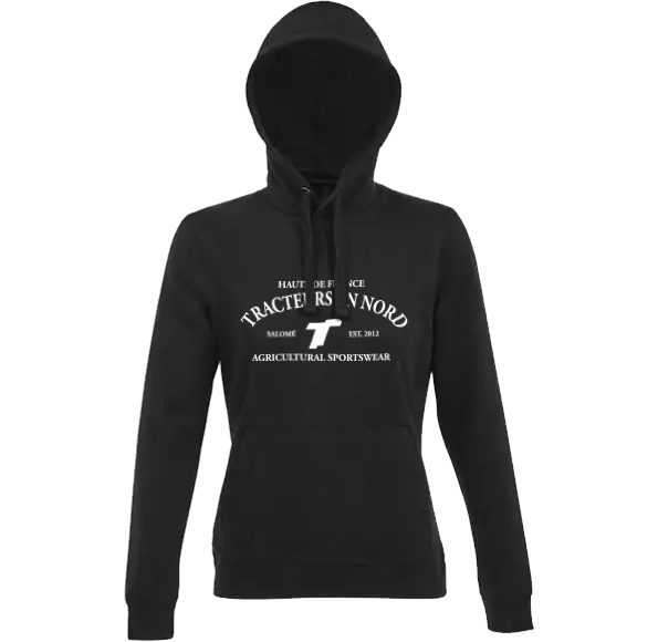 Sweat-shirt femme à capuche en molleton 280. 80 % coton Ringspun et 20 % polyester. Intérieur gratté. Extérieur 100% coton avec une poche kangourou. Coupé cousu. Capuche doublée avec cordon de serrage. Poignets et bas en bord côte 2 x 2. Demi-lune à l’intérieur du col. Bande de propreté intérieur col. Grammage : 280g/m²