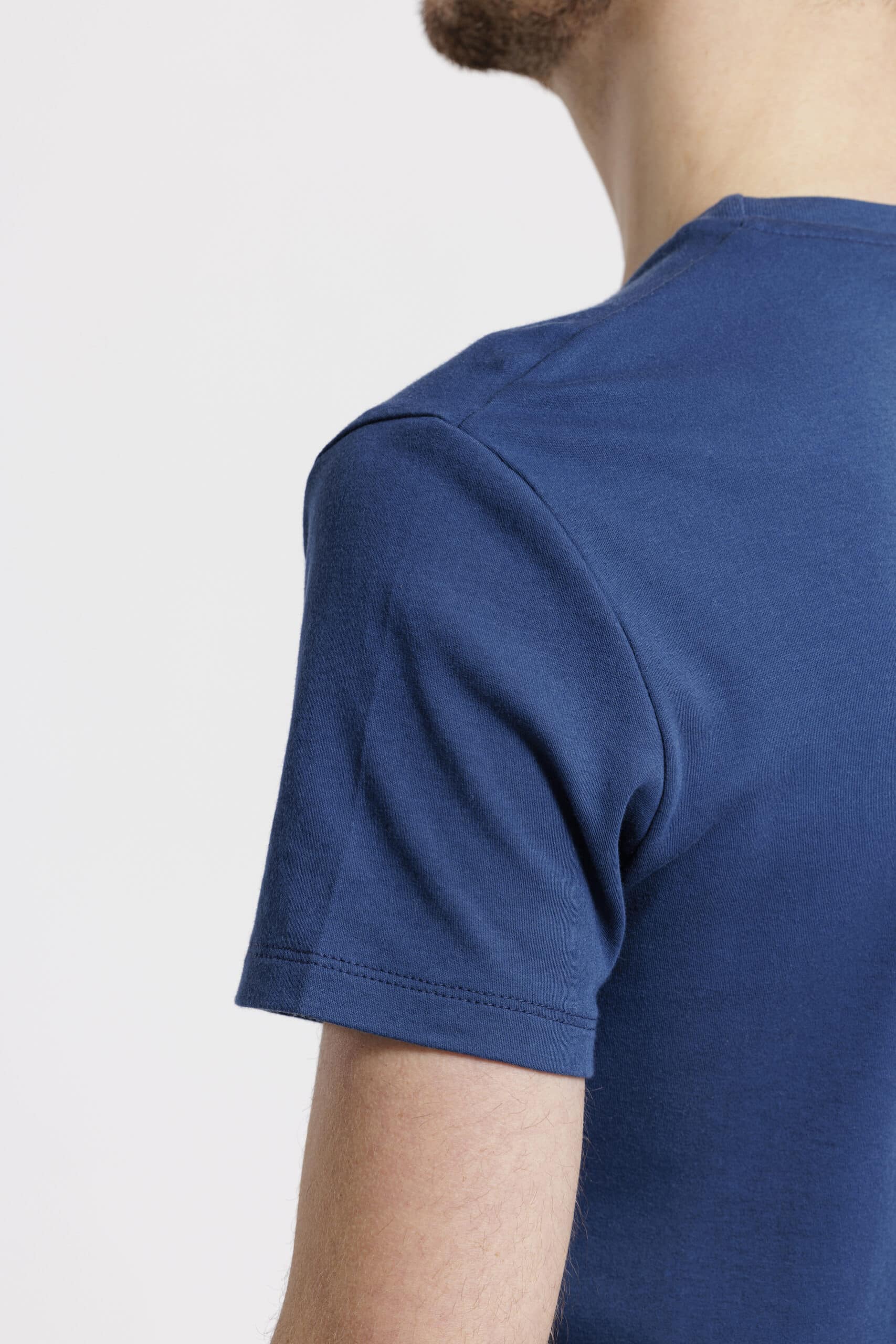 L’interlock est une technique de tricotage élaborée à partir de deux fils en deux épaisseurs de point jersey. Cela donne un tissu identique des deux côtés. Il est plus épais et donne un tombé particulièrement droit et lourd. Le résultat est un t-shirt avec beaucoup de structure, une meilleure tenue de la matière dans le temps, un toucher plus doux qu’un jersey classique et évite notamment que les bords roulottent au lavage.