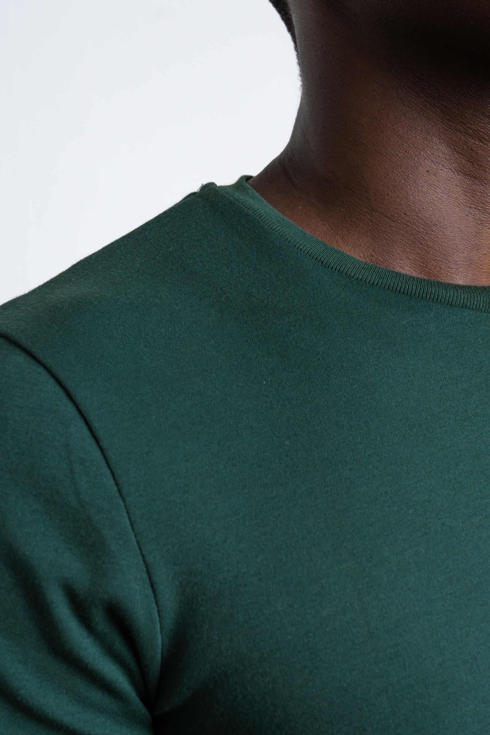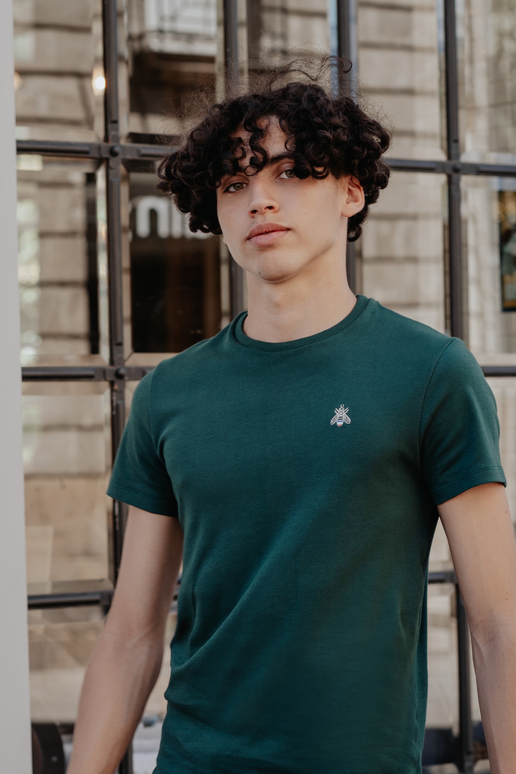 Pour la matière, nous avons sélectionné un interlock 100% coton bio certifié GOTS et la teinture certifiée OEKO-TEX. Pour éviter que votre t-shirt vrille ou se déforme, nous avons choisi un interlock de 180g/m². Plus stable et dense qu’un jersey simple.