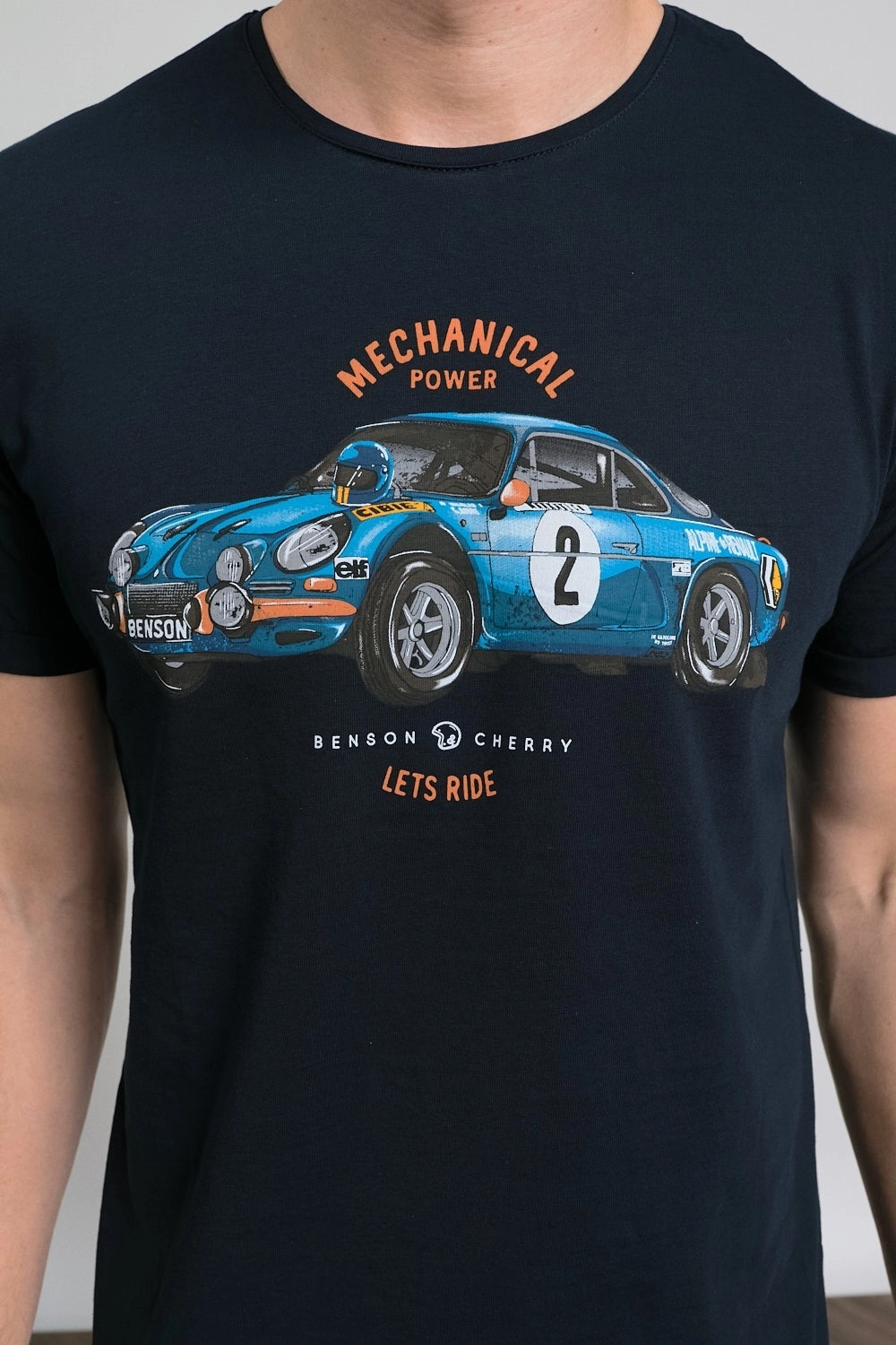 Découvrez le T-shirt Telesco pour homme de la marque Benson and Cherry. Un choix parfait pour les amateurs de mode et de voitures classiques. Ce t-shirt à manches courtes se distingue par son imprimé vibrant représentant la célèbre Renault Alpine Rallye. Apportant une touche rétro et dynamique à votre tenue. Avec sa couleur marine profonde, ce t-shirt se démarque par son élégance discrète tout en offrant une base idéale pour divers styles.