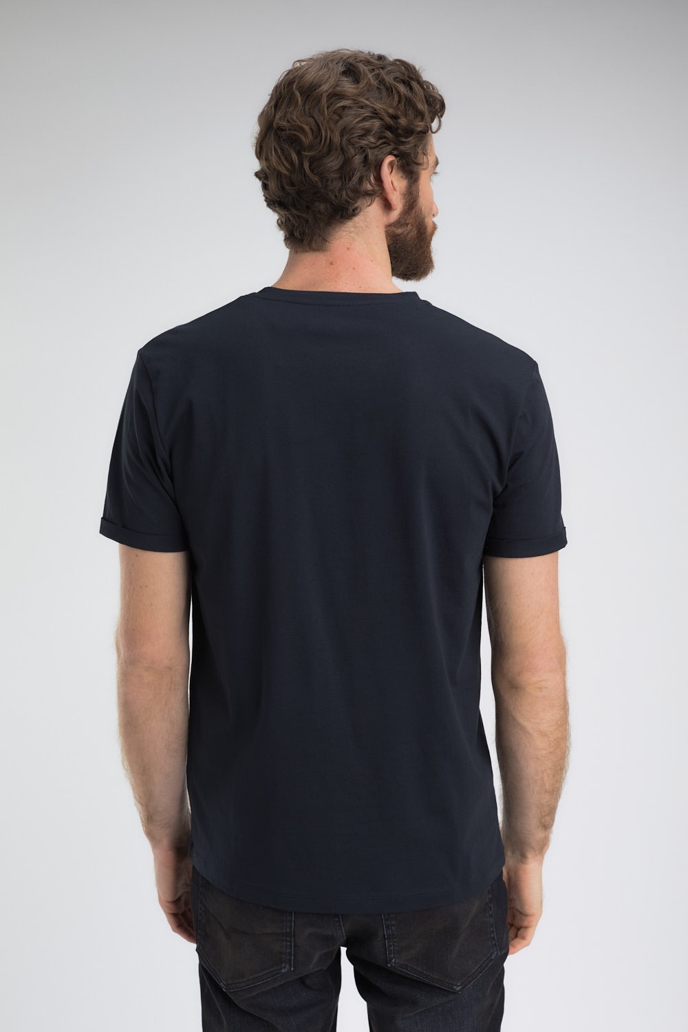 Fabriqué en 100% coton de haute qualité. Ce t-shirt marine est confectionné dans un jersey doux et respirant. Garantissant une sensation agréable sur la peau et un confort durable. Même lors des journées les plus chaudes. Les finitions en bords-côtes au niveau du col renforcent la tenue du vêtement et lui apportent une touche soignée et résistante dans le temps.