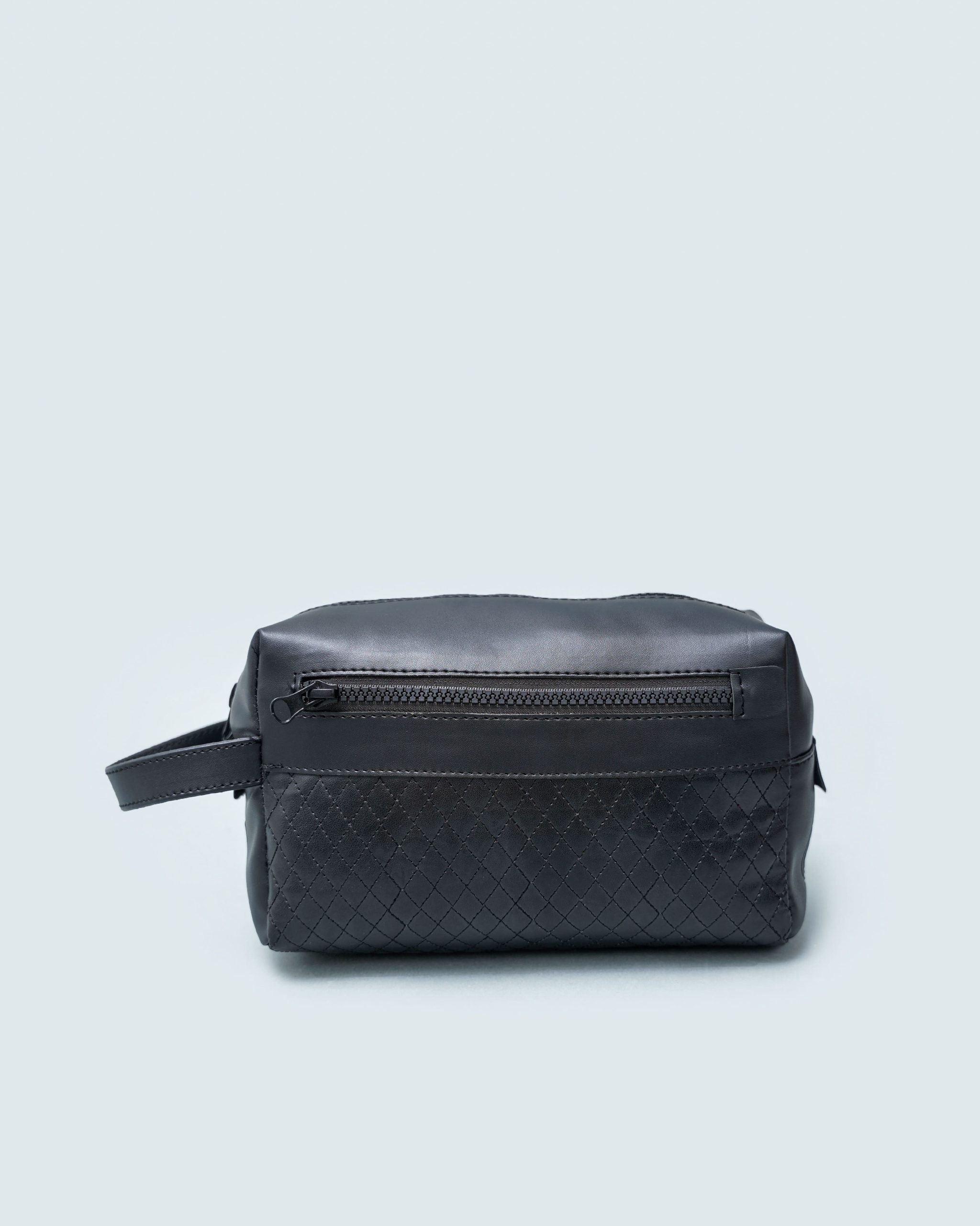 Le design de cette pochette repose sur une combinaison subtile de textures : un cuir synthétique noir lisse sur la partie supérieure, et un motif texturé discret sur le bas. Elle est dotée d’une fermeture zippée renforcée à l’avant et d’une poignée latérale facilitant le transport. Un look sobre mais sophistiqué, à l’image des valeurs du Taraji.