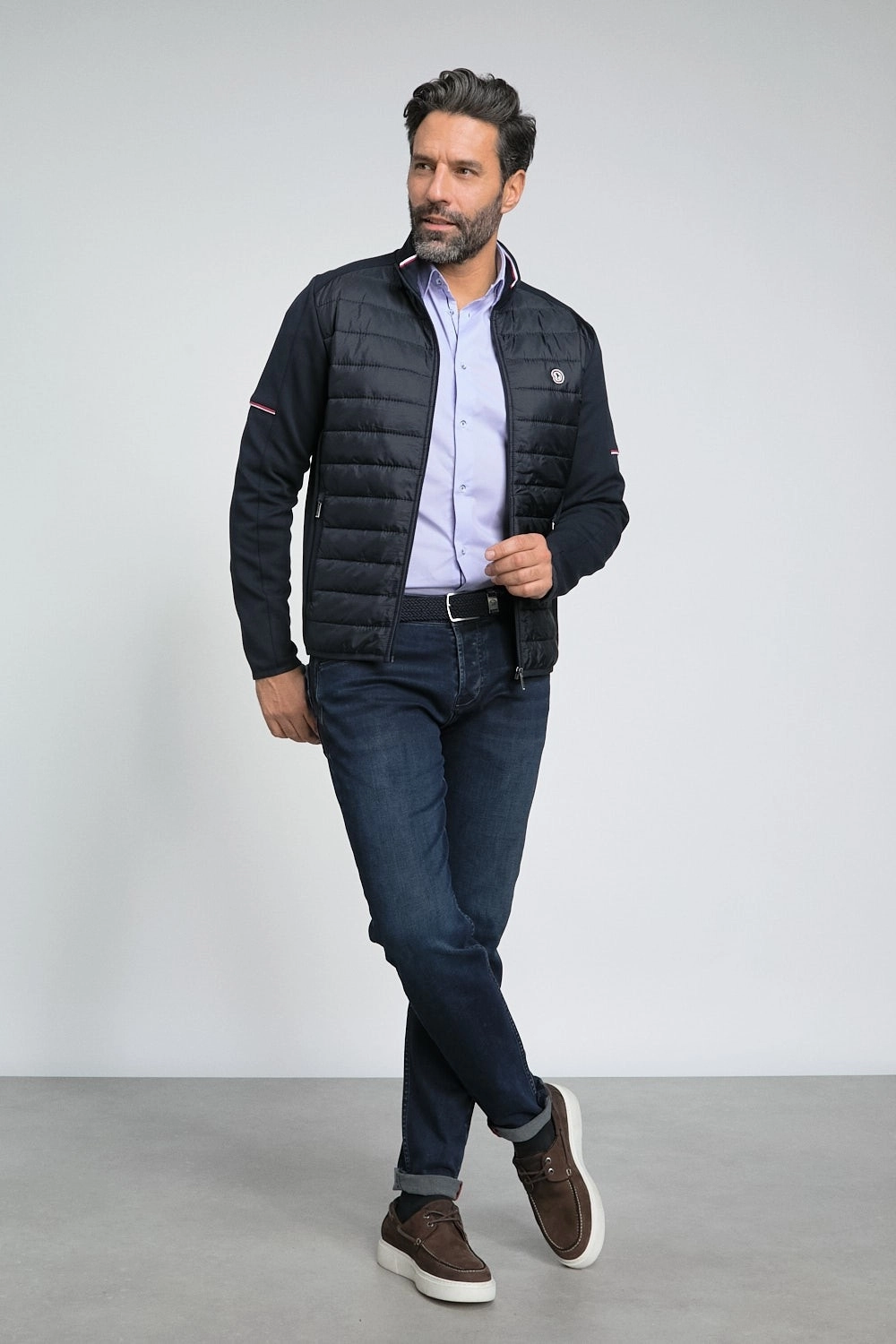 Découvrez la Veste bi-matière Sardine de la marque Benson and Cherry. Une pièce incontournable pour les hommes à la recherche d’un style moderne et sophistiqué. Conçue avec soin, cette veste zippée à manches longues allie confort et élégance grâce à sa combinaison unique de matériaux : du coton de haute qualité et du polyester résistant. Cette veste marine effet bi-matière se distingue par ses empiècements matelassés sur le devant. Apportant une touche d’originalité et de structure à l’ensemble.