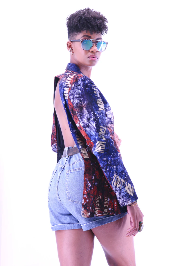 Frais, sexy, chic, et ultra originale, cette veste à dos nu en tissu batik ,dans son style unique saura conquérir la plus futée des modeuses !