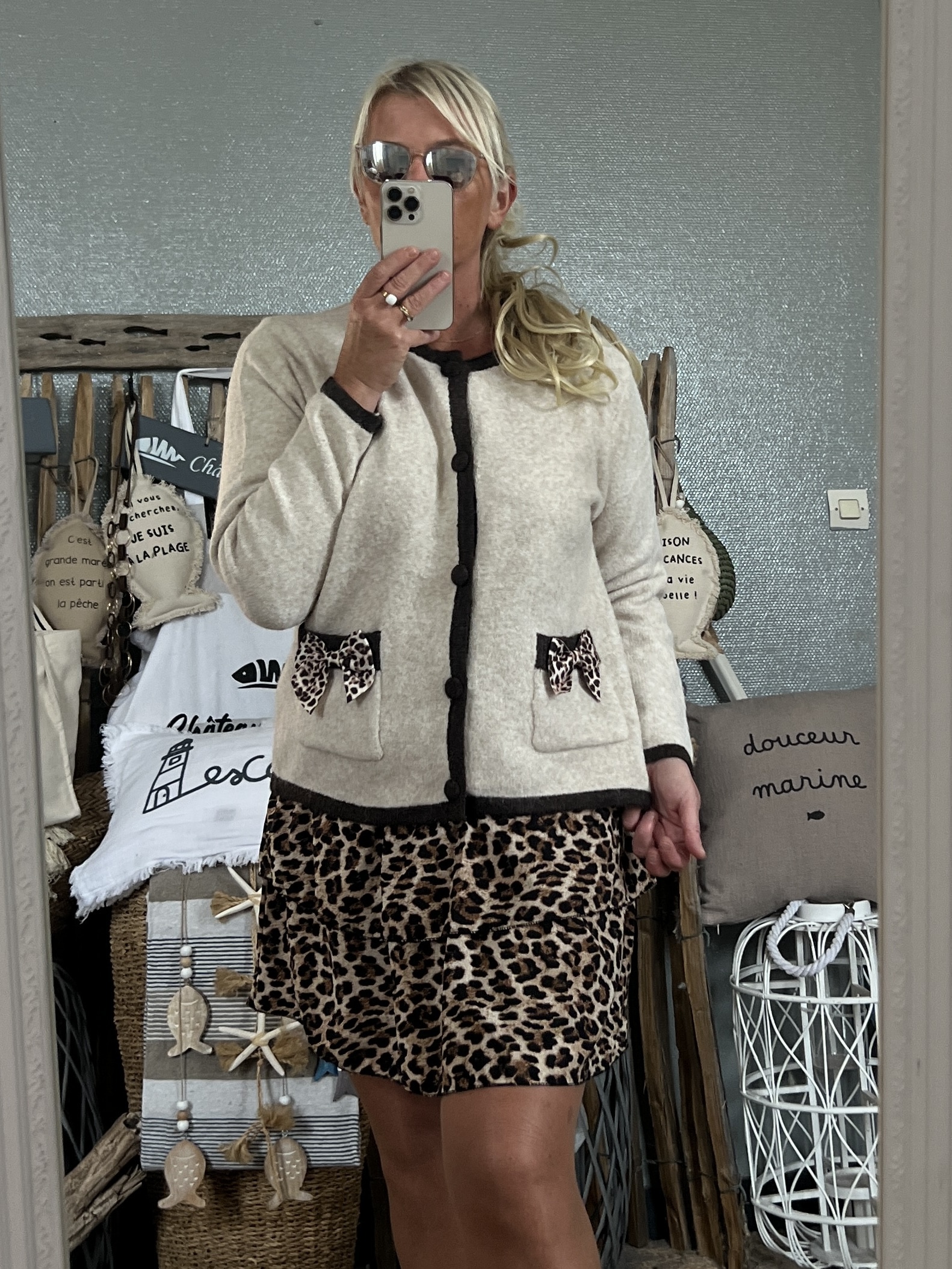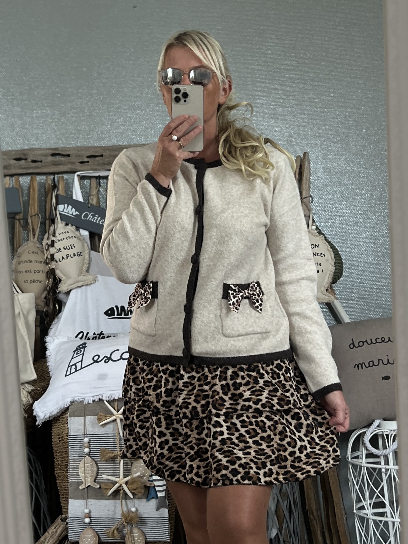 Veste 50% polyamide 35% polyester 10% laine 5% elasthanne taille Unique 36/42 noeuds leopards