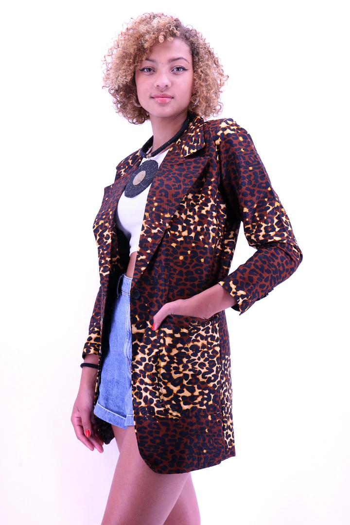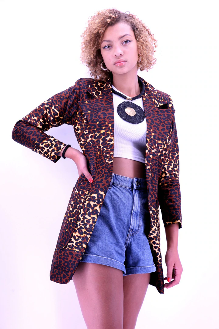 Cette veste mi-longue vous donnera à coup sûr une allure chic. On adore cette version léopard du wax 100% coton.